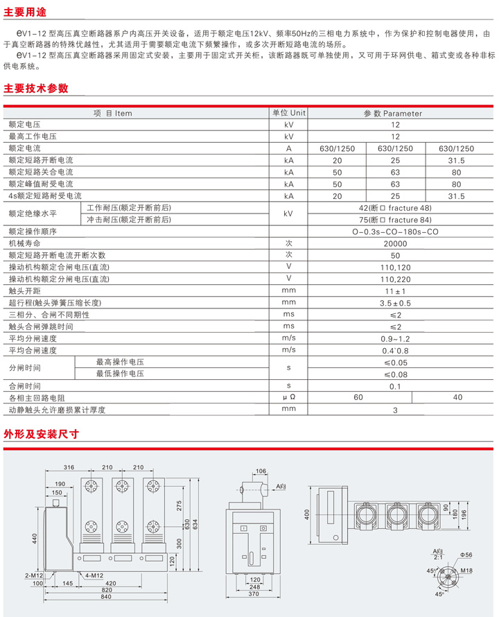 eV1-12高壓真空斷路器