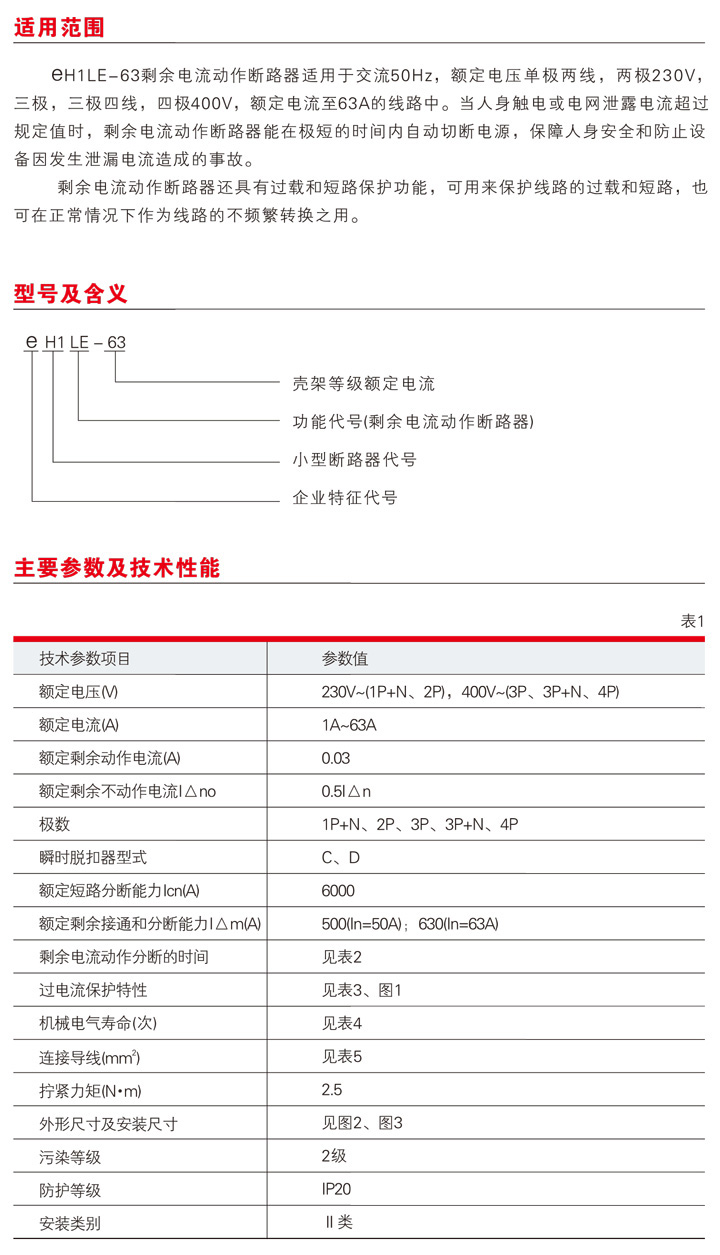 eH1LE高分斷小型漏電斷路器